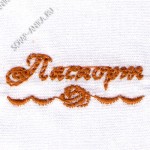 Мотив №2-23. Надпись "Паспорт". Общая площадь вышивки 40х15 мм Ткань - белый хлопок, с припусками по краям. Цвет нитей выбираете самостоятельно. Если цвет не выбран, вышивка будет выполнена нитями цвета "охра".