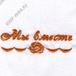 Мотив №2-24. Надпись "Мы вместе". Общая площадь вышивки 45х15 мм Ткань - белый хлопок, с припусками по краям. Цвет нитей выбираете самостоятельно. Если цвет не выбран, вышивка будет выполнена нитями цвета "охра". МЫ ВМЕСТЕ - хороший слоган для начала совм