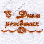 Мотив №2-25. Надпись "С Днем рождения". Общая площадь вышивки 45х25 мм Ткань - белый хлопок, с припусками по краям. Цвет нитей выбираете самостоятельно. Если цвет не выбран, вышивка будет выполнена нитями цвета "охра".