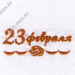 Мотив №2-29. Надпись "23 февраля". Общая площадь вышивки 45х15 мм Ткань - белый хлопок, с припусками по краям. Цвет нитей выбираете самостоятельно. Если цвет не выбран, вышивка будет выполнена нитями цвета "охра".
