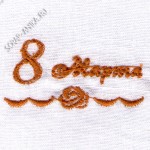 Мотив №2-30. Надпись "8 Марта". Общая площадь вышивки 45х25 мм Ткань - белый хлопок, с припусками по краям. Цвет нитей выбираете самостоятельно. Если цвет не выбран, вышивка будет выполнена нитями цвета "охра".